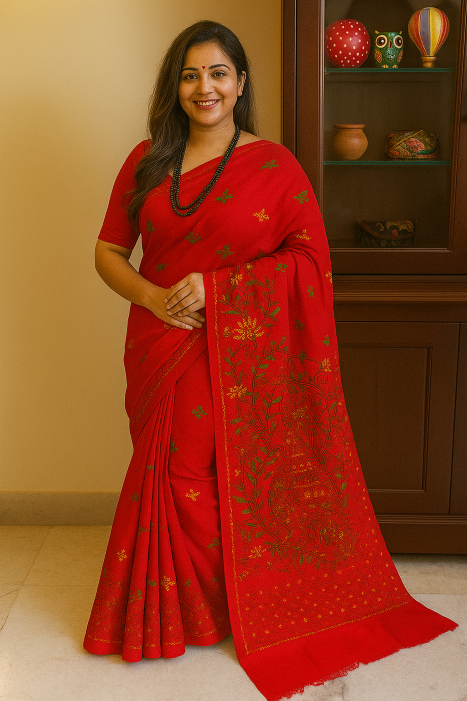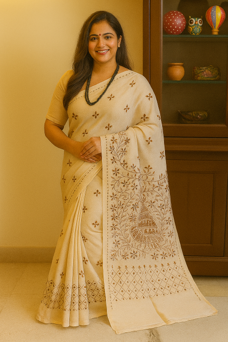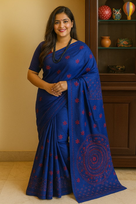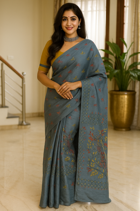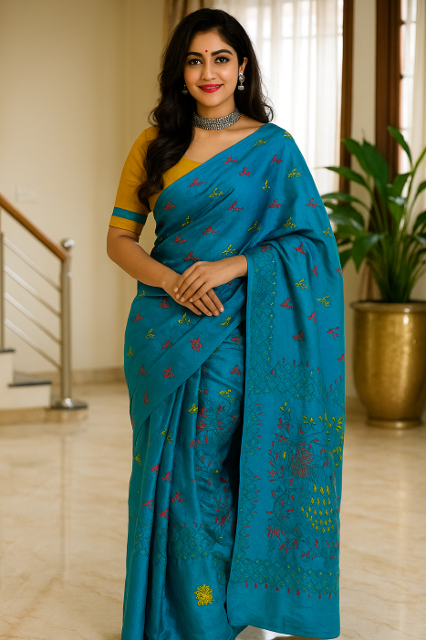 Bagalpuri Silk Kantha Stitch Saree – A Tale of Tradition