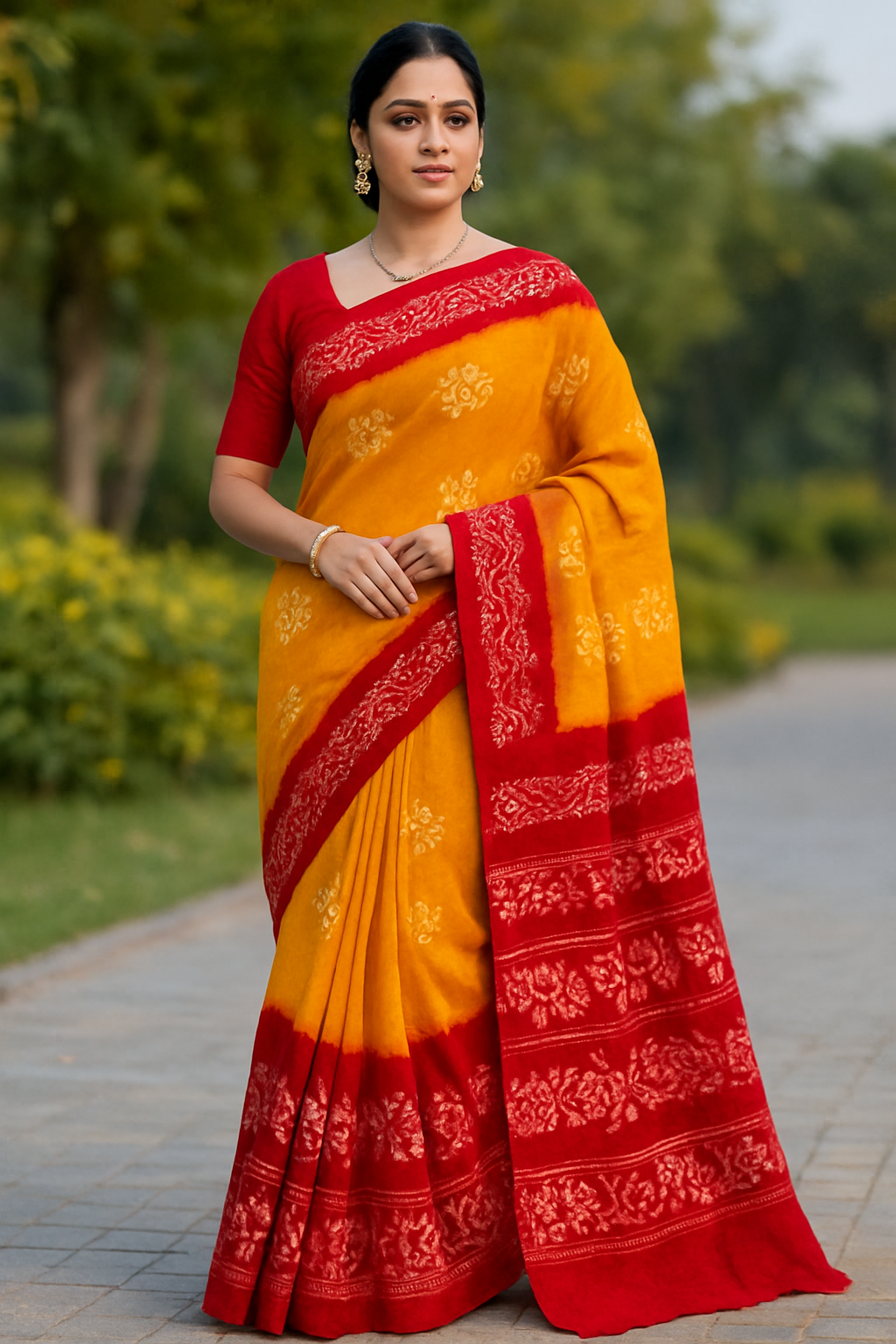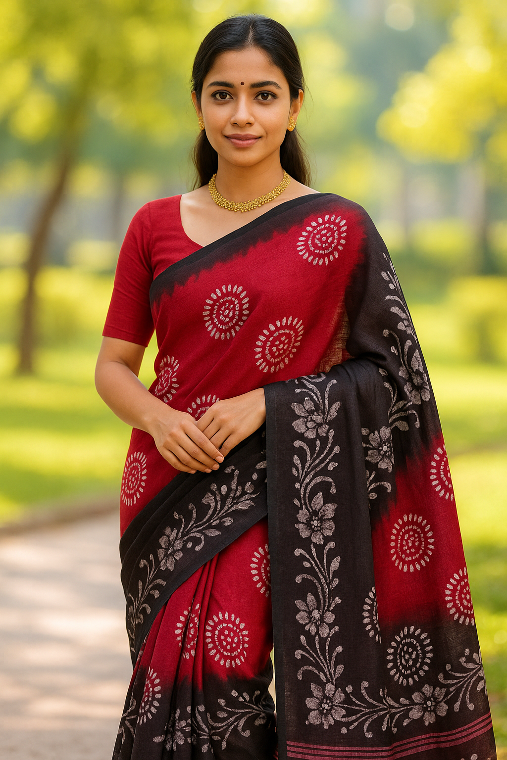 Elegant Linen Batik Saree – Handcrafted Comfort with Timeless Art (Westbengal)