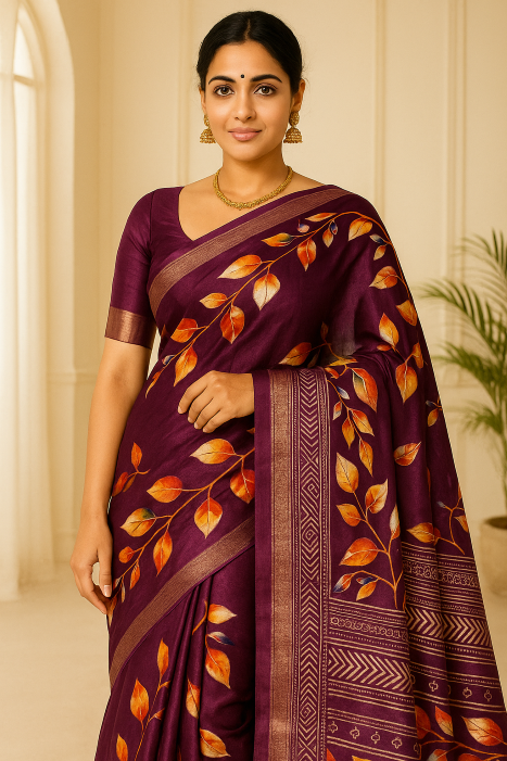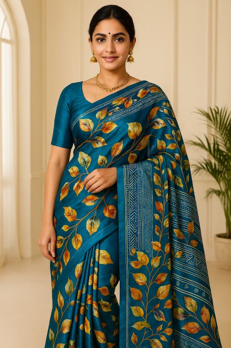 Floral Printed Silk Saree – A Legacy of Luxury and Grace(WestBengal)