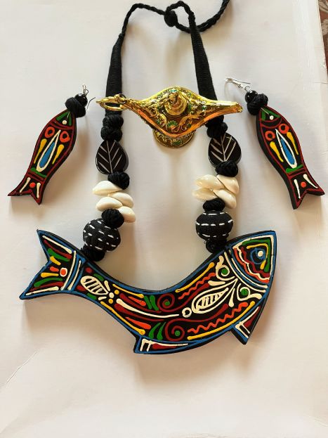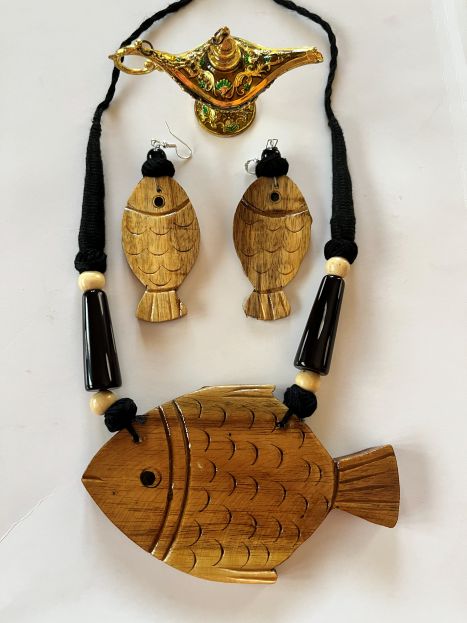 Handcrafted Wooden Jewellery Necklace & Earring Set